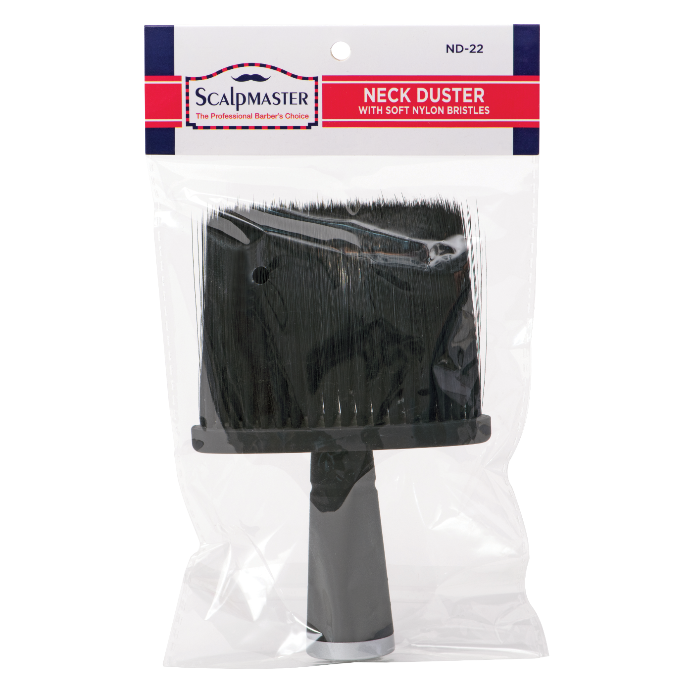 Give every client that crisp, clean post-haircut feel with the **Scalpmaster Extra Wide Neck Duster**. The extra-wide head and ultra-soft nylon bristles gently sweep away loose hair from the neck and shoulders without scratching or irritating the skin.